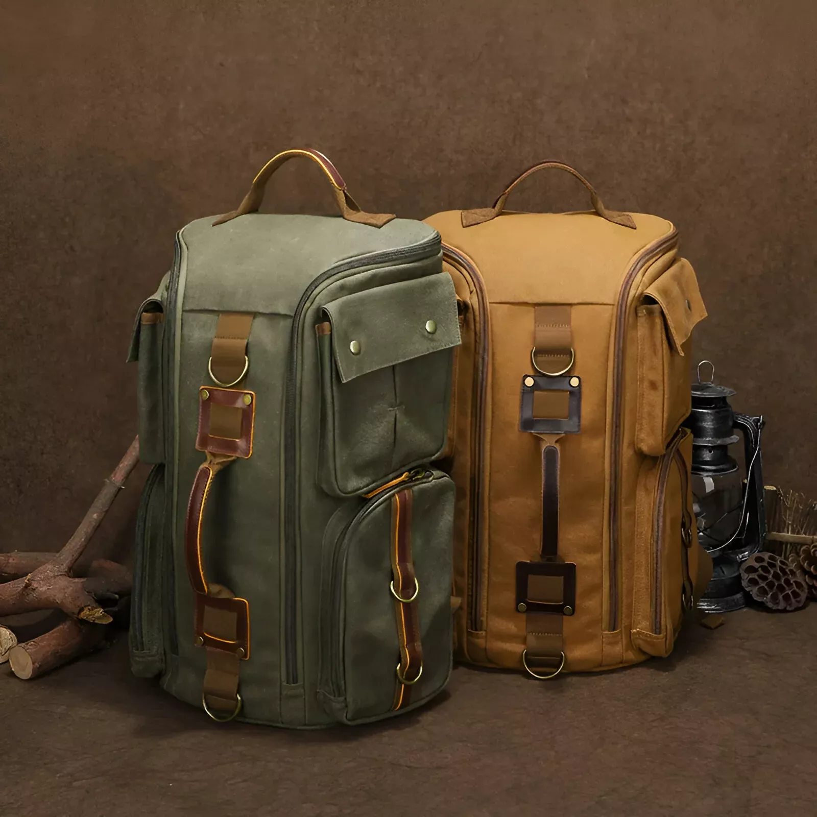 Vintage Canvas Waterproof Backpack for Men – Waxed Leather Daypack & Laptop Rucksack