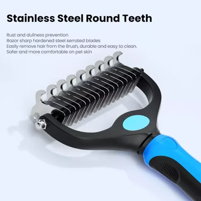 Efficient Knot Removal: Equipped with sharp stainless steel teeth, our hair remover gently cuts through larger knots and tufts without pulling, providing a pain-free grooming experience for your pet. Say farewell to knots and enjoy a sleek, smooth coat in minutes.