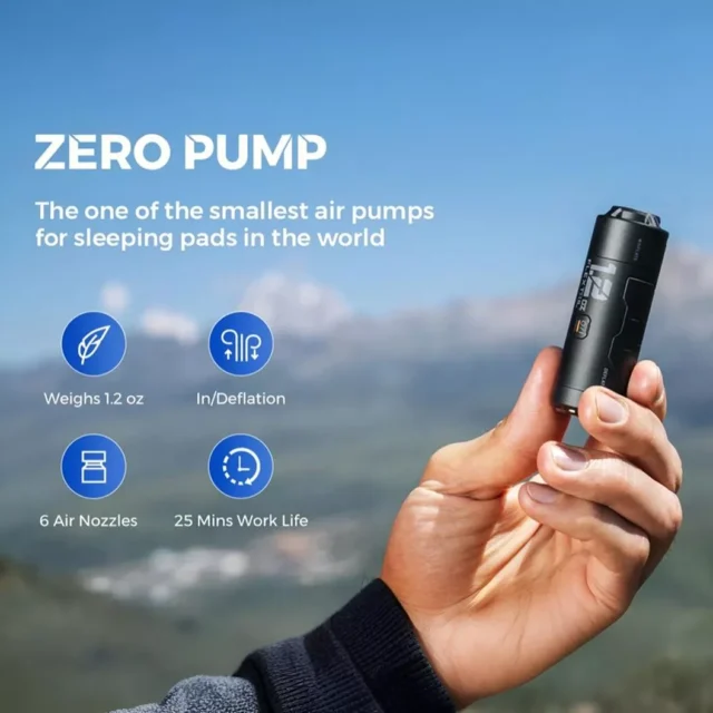 This electric pump packs impressive power in a tiny size. It produces an air pressure of 2.5 kPa and an air flow of 180 L/min, letting you inflate sleeping pads, pillows, or other gear in seconds. Enjoy up to 25 minutes of continuous use on a single charge. Designed for outdoor explorers, it’s perfect for camping trips, backpacking, hiking, or even road trips where space and weight matter.