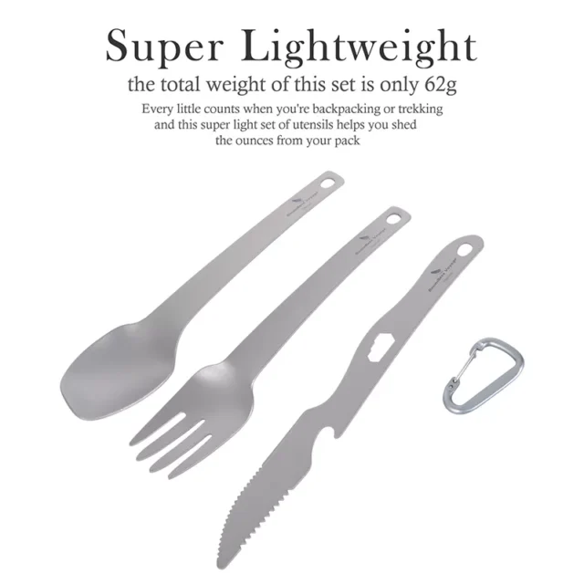 This set is your go-to dining companion when backpacking through rugged trails, camping under the stars, or even enjoying picnics in the park. Its compact size and lightweight build make it easy to pack, while the included hook keeps everything together neatly. Whether you’re traveling light or preparing for a multi-day hike, this titanium flatware ensures you always have reliable utensils at hand.