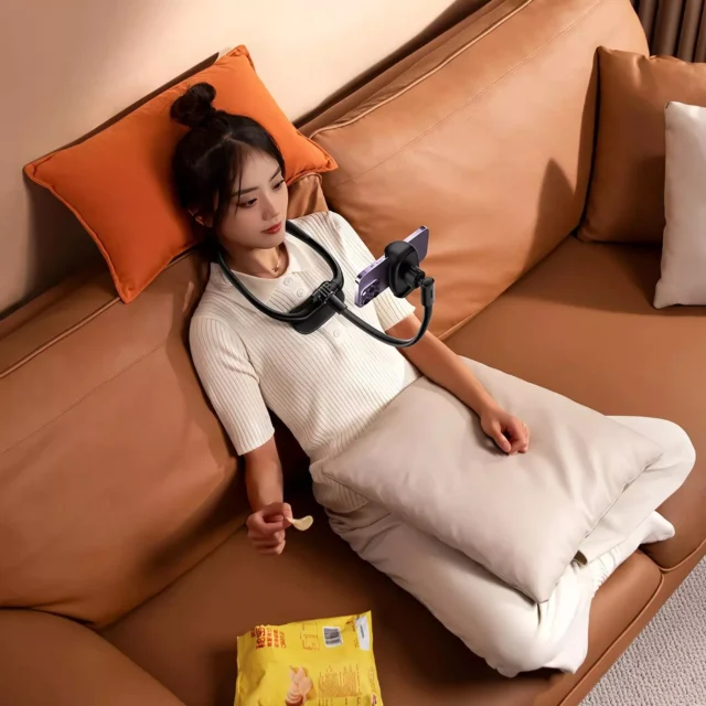 Our Lazy Neck Phone Holder shines in environments where your hands need to be free. It’s particularly useful for reading recipes in the kitchen, enjoying movies on your couch, or conducting video calls at your desk. The adaptability of the neck holder makes it suitable for lying down, standing up, or sitting.