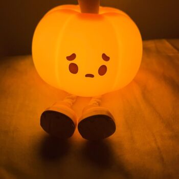 What a delightful pumpkin night light! It's so soft and squishy, perfect for my toddler to hold. Plus, the dimmable feature is great for setting just the right amount of light at bedtime.