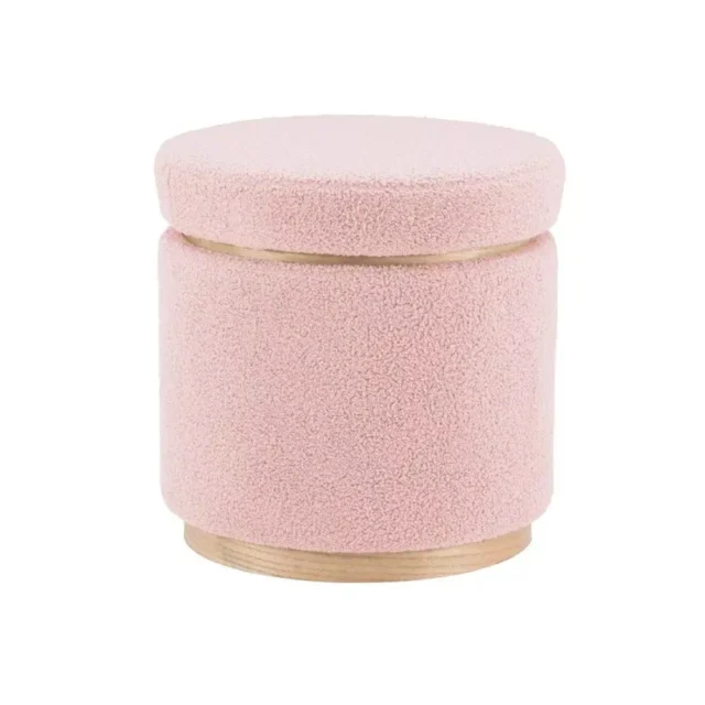 This Storage Ottoman Stool shines in its versatility. Perfect next to your favorite armchair, by a desk, or as a stylish accent to your makeup vanity, it seamlessly integrates into any decor. The natural finish pinewood trim subtly complements the blush sherpa, creating a piece that’s both eye-catching and understated. The soft fabric invites relaxation, making it an ideal footrest, while the sturdy construction offers reliable extra seating.