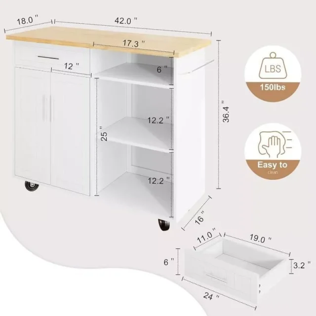 Don’t miss the chance to transform your kitchen’s functionality and aesthetics. Order now and experience the convenience and style of our Versatile White Kitchen Island Cart.