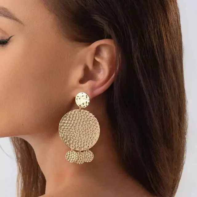 Make a timeless statement with these vintage-inspired round pendant earrings, designed for women who love effortless elegance. Featuring a simple yet striking geometric design in radiant gold color, these earrings bring together bohemian charm and modern sophistication. Whether worn for a wedding, a romantic evening, or to elevate your everyday look, they add the perfect finishing touch to any outfit.