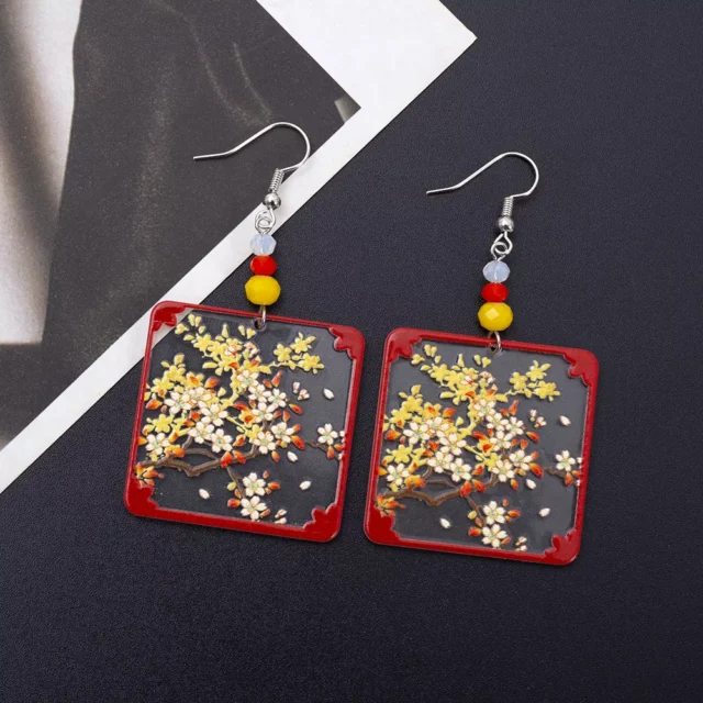Bring a touch of timeless charm to your look with these stunning Vintage Ethnic Floral Square Acrylic Drop Earrings. Designed with translucent geometric squares and delicate branch and flower details, these earrings combine vintage elegance with a modern artistic twist. The rich red tones create a striking color contrast that complements both casual and dressy outfits.