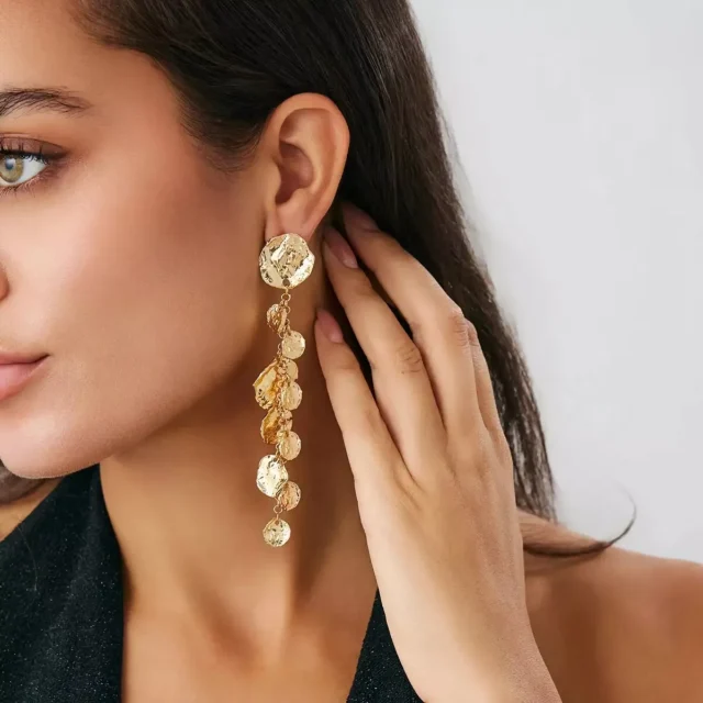 Whether you’re heading to a glamorous party, a casual outing, or simply want to elevate your everyday look, these earrings are the perfect choice. The chic vintage style adds a subtle touch of sophistication, while the metallic finish ensures they stand out without being overbearing. Measuring just the right size for comfort and visibility, they easily complement cocktail dresses, office outfits, or even simple jeans and a blouse.