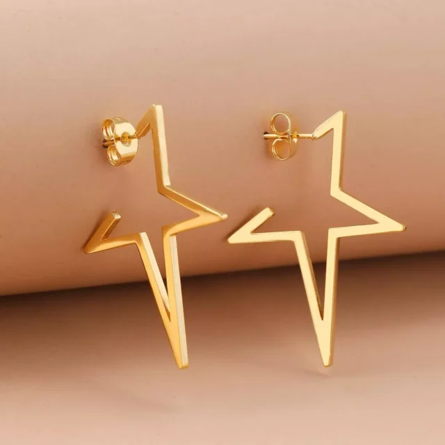 Make a bold statement with these stunning vintage gold star stud earrings. Designed with a hollow pentagram shape, they combine a touch of punk, hip hop, and fashion-forward elegance. Lightweight yet striking, these earrings instantly elevate your outfit, whether you’re dressing up for a special occasion or adding an edgy twist to your daily style. Their timeless star design radiates confidence and individuality, making them a must-have accessory for anyone who loves to stand out.
