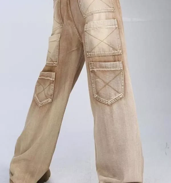 Designed with meticulous attention to detail, these trousers boast a full-length, wide-leg pattern that flatters all body types. Made from pure cotton denim, they offer a non-stretch, regular fit that ensures comfort without compromising on style. The multiple pockets are not just functional; they add an edge to the overall design, making these jeans as practical as they are stylish. With a classic zipper fly closure, they offer an impeccable fit and timeless charm.