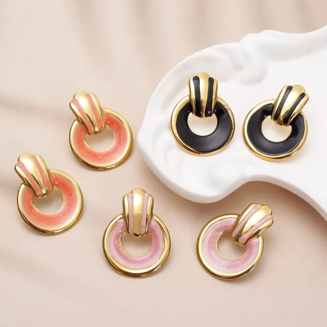These Vintage Round Stud Earrings bring timeless charm with a modern twist. Designed in a classic round shape and finished with a luxurious gold-color plating, these earrings feature a stunning glazed surface in shades of orange, pink, and black. Crafted from durable stainless steel, they are lightweight yet long-lasting, perfect for everyday wear or special occasions.