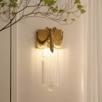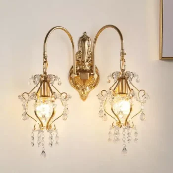 Luxury Retro French Romantic Copper Crystal Wall Lamp