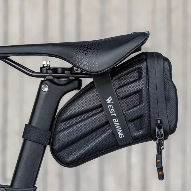 Its streamlined design fits snugly under your bike seat, while the rugged EVA hard case exterior keeps your belongings protected from bumps, splashes, and dirt. Whether you’re commuting through the city, tackling mountain trails, or cruising open roads, this bag delivers both style and reliability.