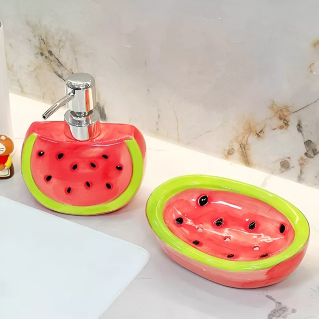 This watermelon ceramic pump bottle and soap dish set is more than just a storage solution — it’s a statement piece that adds charm and joy to your everyday rituals. Whether you’re refreshing your bathroom décor, organizing your kitchen sink, or looking for a delightful gift, this set brings both beauty and function. Turn ordinary moments into something special — bring home this fun and functional watermelon set today and enjoy a splash of sweetness every time you wash up.