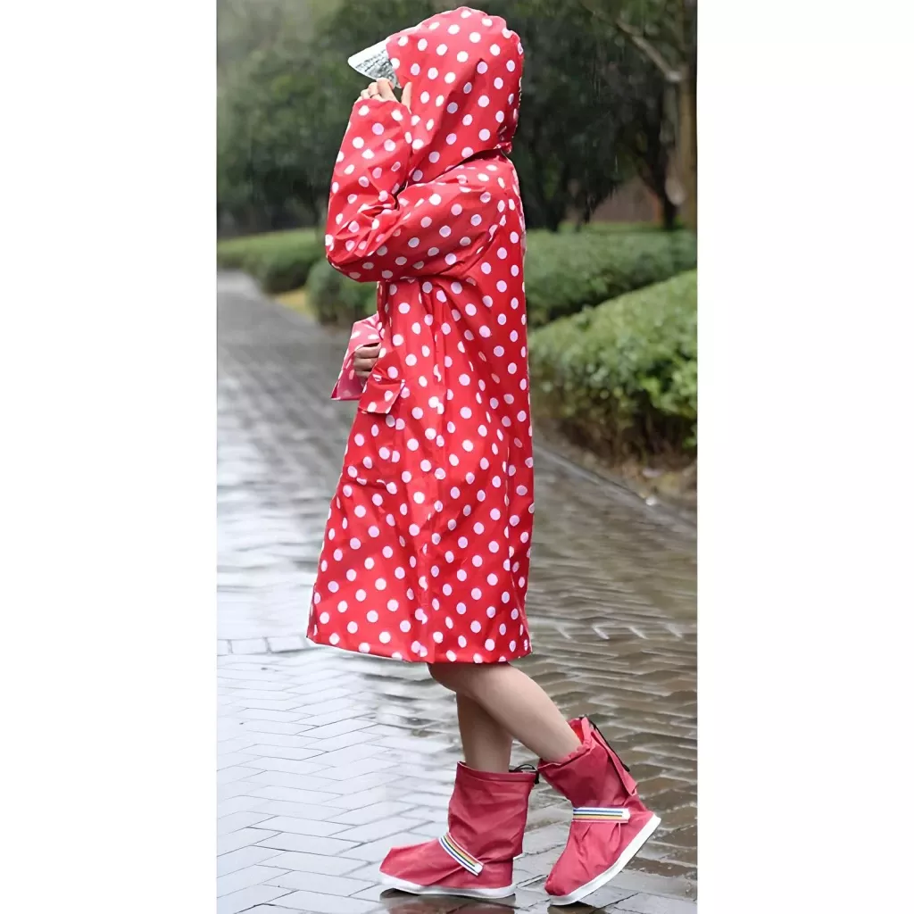 Stay dry and fashionable with our Waterproof Hooded Rain Poncho, designed for both men and women. This long raincoat, adorned with playful dots, is perfect for outdoor travel, offering superb protection against unexpected showers. Made from 100% Polyester PONGEE, this rain poncho combines functionality with style, ensuring you remain comfortable and dry during your adventures.