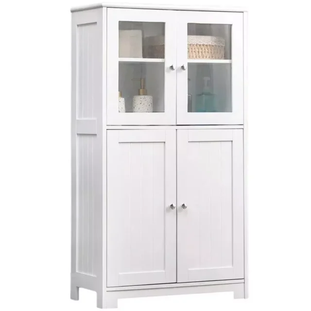 White Wooden Bathroom Floor Storage Cabinet