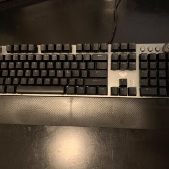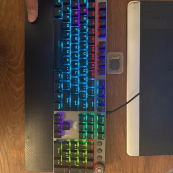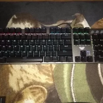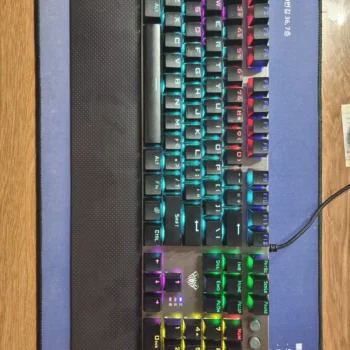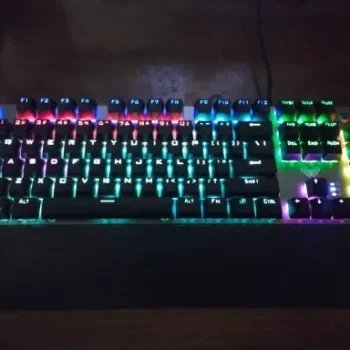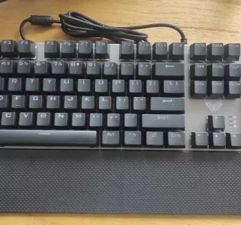 Having used a Logitech G Pro, which is undoubtedly higher quality but also pricier, this keyboard holds up well. It's truly mechanical with blue switch keys. The lighting isn’t RGB, and the effects are controlled by the click-wheel, with no software control options. The key performance is clicky-clacky, loud, and distinct. They feel a bit loose and bouncy compared to the G Pro. The keys are properly arranged and spaced, and the wrist-rest attaches magnetically, which is a nice feature. The gray color fits any color scheme. Pros include affordability, real mechanical keys, and no weird key placements. Cons are non-RGB lighting and slightly loose keys. The lighting effects are hardware-based, so no software installation is needed.