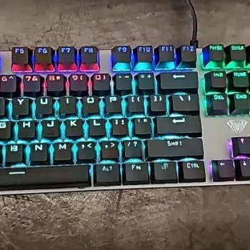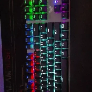 The colors can be deceiving as it looks like it's full RGB but it's not. The colors on the keys are fixed but there are options for different lighting patterns. No need for external software to change the lighting, which I love. There are 19 patterns to choose from. The keys are loud, expected with blue mechanical switches. They're great for typing but could be distracting for others. The plastic keys feel a bit flimsy but you get used to it. The magnetic wrist rest is a great feature. Also, the indicator lights are conveniently located. Overall, it’s a great affordable keyboard with real mechanical switches.