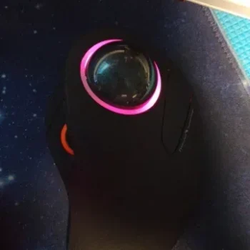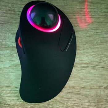 This ergonomic trackball mouse is easy to install and impressively large, with easily accessible control buttons. The colored light effect is a nice addition, though it seems more suited for gamers. The size allows for less hand movement, and the mouse is quick to respond and reliable. The design is visually appealing, and I appreciate that the mouse is rechargeable, eliminating the need for batteries. While there's a bit of a learning curve for those used to traditional mice, there are no major complaints about its performance.
