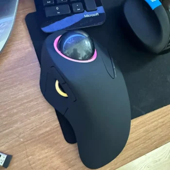 This trackball is exceptional. The ball tracks very smoothly, and the shape is comfortable in the hand. The ability to pair with two different devices over Bluetooth and a third via the RF dongle offers great connectivity options. The RGB ring around the ball is a stylish addition.