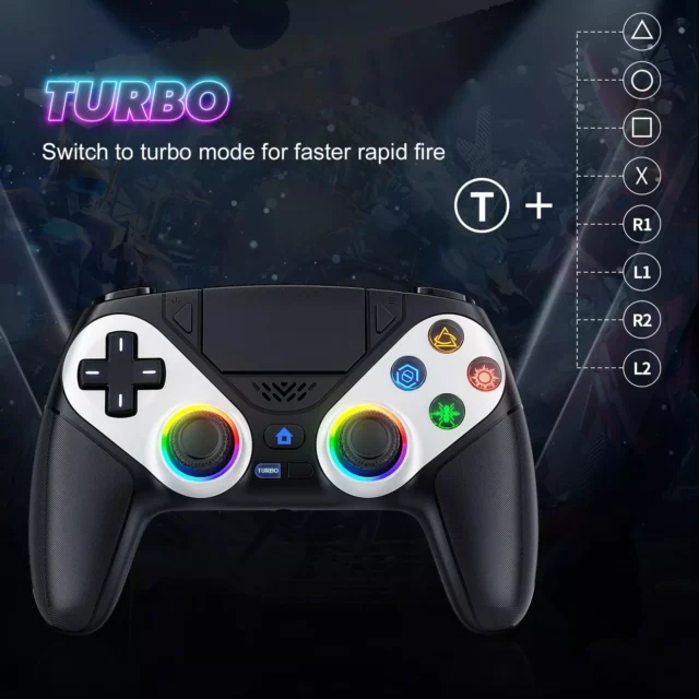 This controller comes fully loaded with everything you need for peak performance. It features high-quality 3D joysticks and responsive buttons for precise input, plus two customizable back buttons for advanced control. The Turbo function gives you rapid-fire action at the press of a button, while the six-axis gyroscope ensures smooth, accurate motion control. With built-in dual vibration motors, you’ll feel every hit, crash, and explosion with lifelike intensity.