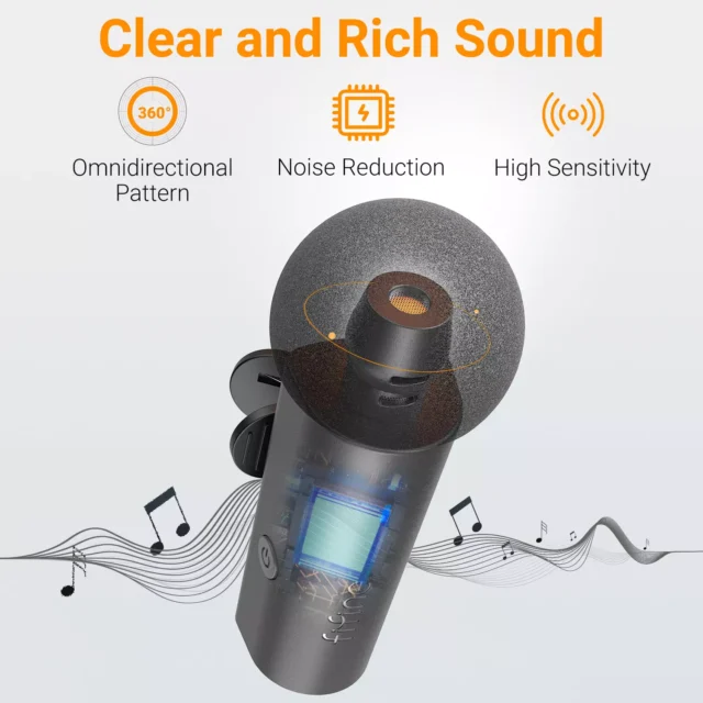 No cables. No interruptions. Using advanced 2.4GHz technology, this microphone provides a stable wireless connection with low latency. That means no awkward audio delays in your videos. Its pocket-sized design clips easily onto your clothing, so you can record hands-free and focus on delivering your message. Perfect for on-the-go creators who need reliable audio anytime, anywhere.