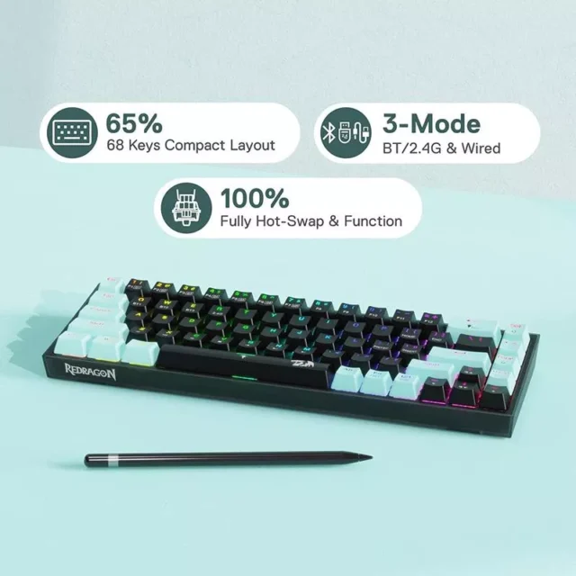 Step up your setup with a keyboard that combines style, portability, and cutting-edge performance. With its vibrant RGB glow, versatile connectivity, and customizable switches, it’s built for those who demand more from their gear. Don’t just type or play—stand out while doing it.