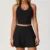 Made from a high-quality blend of 78% polyester and 22% spandex, the fabric offers excellent elasticity, breathability, and quick-drying properties. It hugs your body with a flattering fit while allowing freedom of movement for any type of exercise. The outfit is lightweight, anti-pilling, anti-shrink, and designed to last through every stretch, squat, or sprint. With its sleek sleeveless sports bra and versatile skirt, you get maximum support and style in one set.