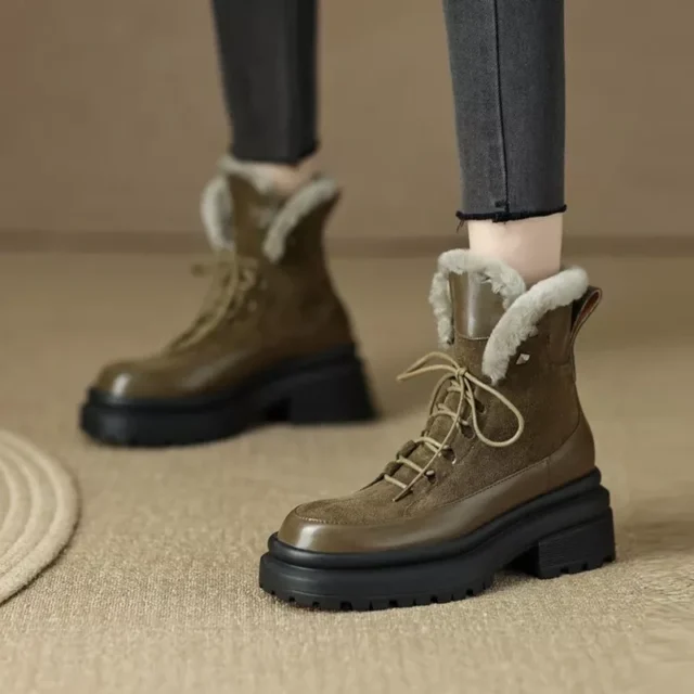 Say hello to your new cold-weather essential — the Women’s Cross-Tied Leather Ankle Snow Boots. These boots aren’t just footwear, they’re a fashion-forward statement designed for the modern woman who values both warmth and elegance. Crafted from genuine leather and lined with cozy wool, these ankle boots are your perfect companion for frosty mornings, snowy strolls, or stylish city walks.
