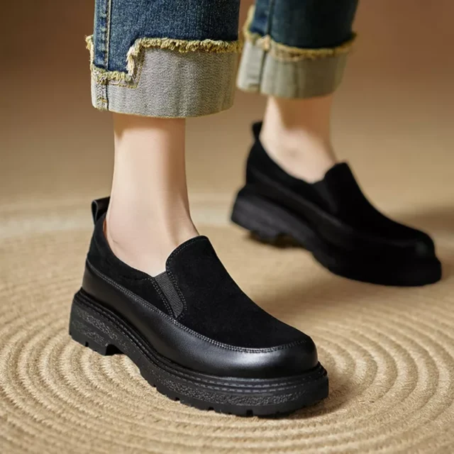 Upgrade your everyday look with these genuine leather loafers, designed for women who appreciate both comfort and sophistication. Made from a premium blend of genuine leather and soft sheep suede, these shoes bring a timeless charm to any outfit. With a versatile round toe and a chunky 1.4 in heel, they offer the perfect balance between style and support. Whether you are heading to work, meeting friends for brunch, or enjoying a relaxed weekend stroll, these loafers are your go-to footwear for spring and autumn.