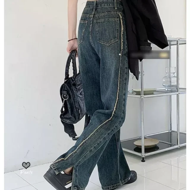 What sets these jeans apart is their unique blend of high-street style and personal comfort. The ruffle decoration is not just a detail—it’s a statement of your unique style. The fabric’s slight stretch ensures you won’t have to sacrifice comfort for fashion. These jeans embody the essence of modern streetwear with an individualistic edge.