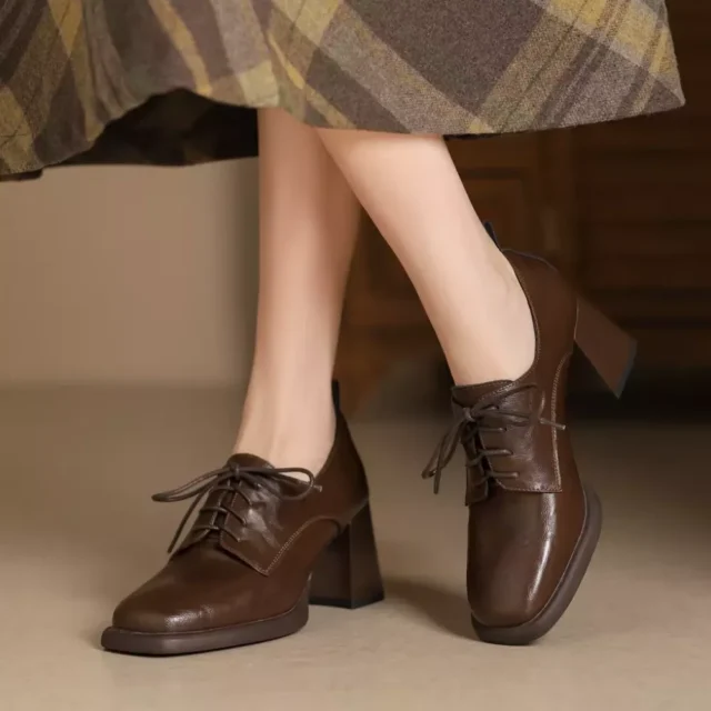 These leather square-toe lace-up pumps are more than just shoes – they’re a statement of style and sophistication. Perfect for women who want elegance without compromise, they bring together comfort, durability, and fashion-forward design. Pair them with dresses, skirts, or tailored pants and instantly elevate your look. Don’t just wear heels – own the room with them.