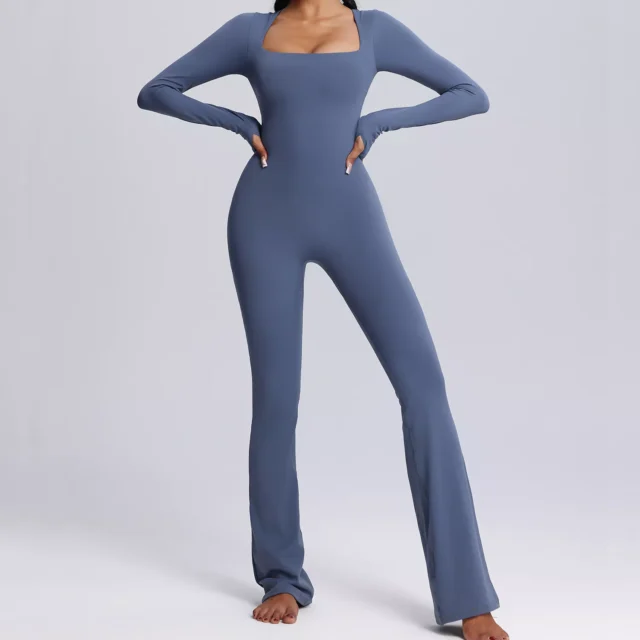 Step into performance and style with this sleek one-piece yoga jumpsuit, designed to support you through every stretch, squat, and sprint. Crafted from a premium blend of nylon and spandex, this skin-tight suit hugs your body for a flattering fit while giving you the flexibility and breathability you need. With seamless construction and full-length sleeves, it offers a smooth, second-skin feel that moves with you during high-intensity workouts.
