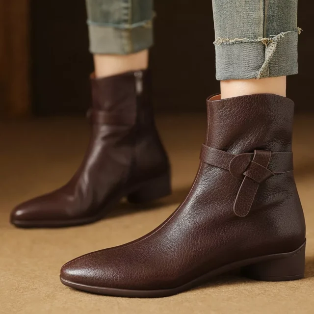 These Women’s Sheepskin Side Zip Flats Autumn Ankle Boots are the perfect blend of comfort, warmth, and casual chic. Crafted from high-quality, genuine sheepskin leather, these boots are designed to keep your feet cozy while adding a touch of elegance to your wardrobe. Whether you’re heading out for a casual day or want to make a style statement in the cooler months, these ankle boots are the ideal footwear choice.