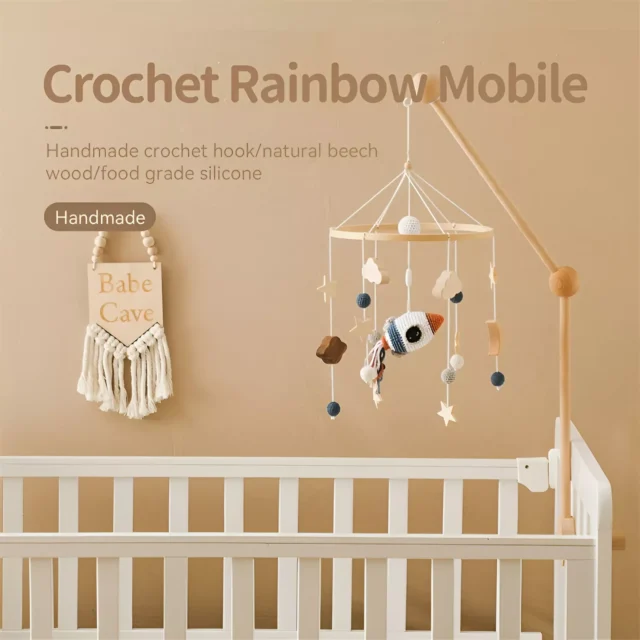 The unique charm of this wooden mobile bracket lies in its simplicity and adaptability. Unlike plastic alternatives, its natural wood design is not only eco-friendly but also timeless, turning a functional piece into a nursery decoration. Its ability to combine play, comfort, and style makes it a must-have accessory for parents who want the best for their baby’s environment.