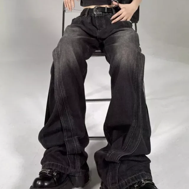 What sets these jeans apart is their unique blend of a retro aesthetic with contemporary fashion trends. The wide-leg cut provides a flattering fit for all body types, and the washed, worn-in look ensures each pair is unique. This is more than denim; it’s a statement piece that pays homage to the iconic Y2K and Gothic styles while keeping it effortlessly modern.