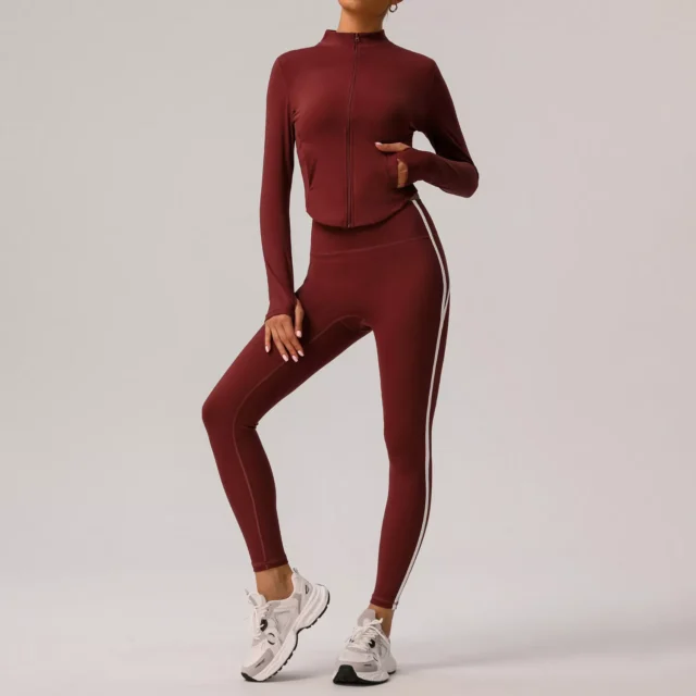 This 2PCS yoga set is not just about looks; it’s designed for performance. Whether you’re a yoga enthusiast, a fitness lover, or someone who enjoys an active lifestyle, this set gives you the freedom to move with ease. The seamless construction provides ultimate comfort and a sleek, modern look that transitions effortlessly from the gym to casual wear. The high-waisted leggings offer support where you need it most, while the full-sleeve jacket gives you extra coverage without sacrificing mobility.